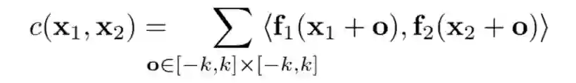 可以看到,这里的滤波不是对卷积核的,而是将两幅特征图的多个 kxk 的区域分别做相关滤波,从而保持了相对位置。