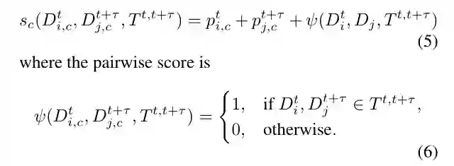 最后对于多目标跟踪的部分,作者对于两个目标的连接代价设置如下: