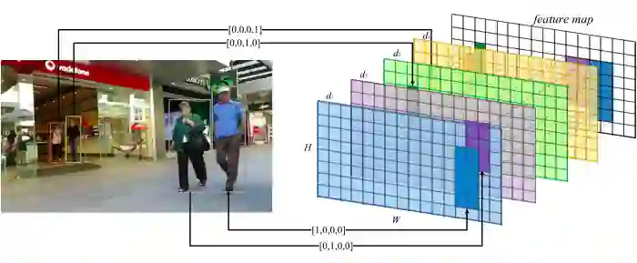 方法很巧妙,就是将每个观测框利用 one-hot 编码映射到特征图,这种方式比基于 iou 的要快很多: