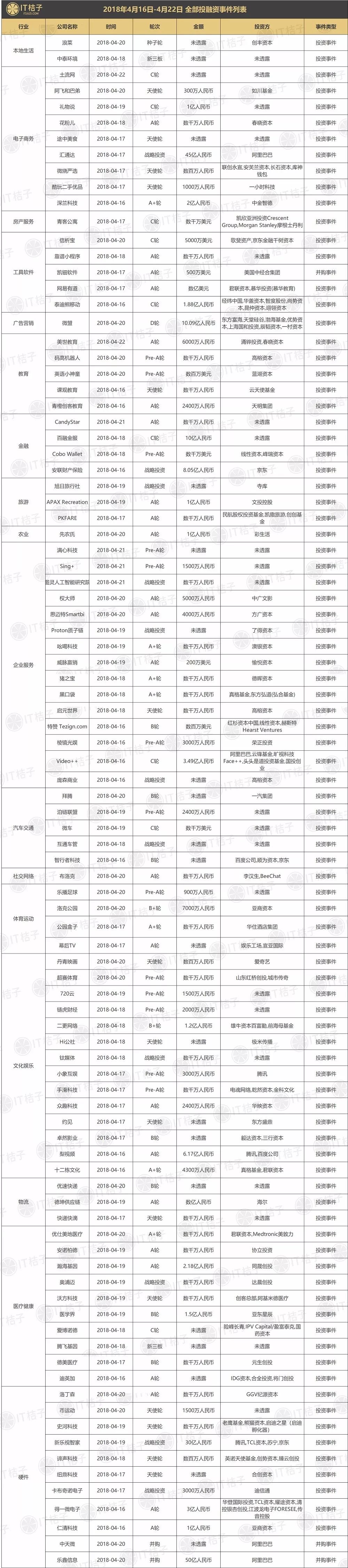 上周全部融资事件列表如下:(点击图片可放大查看)