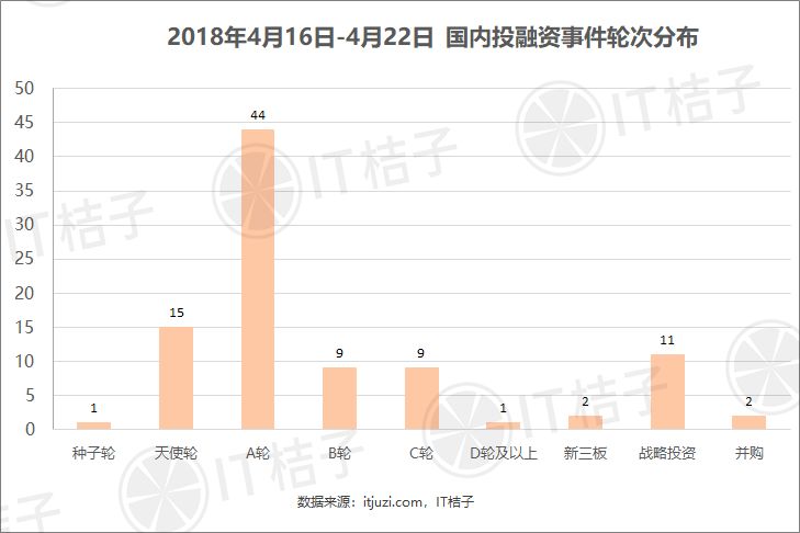 上周 IT 桔子共收录了 94 起国内投融资并购事件,覆盖 17 个行业领域。其中企业服务是上周投融资事件最多的行业。