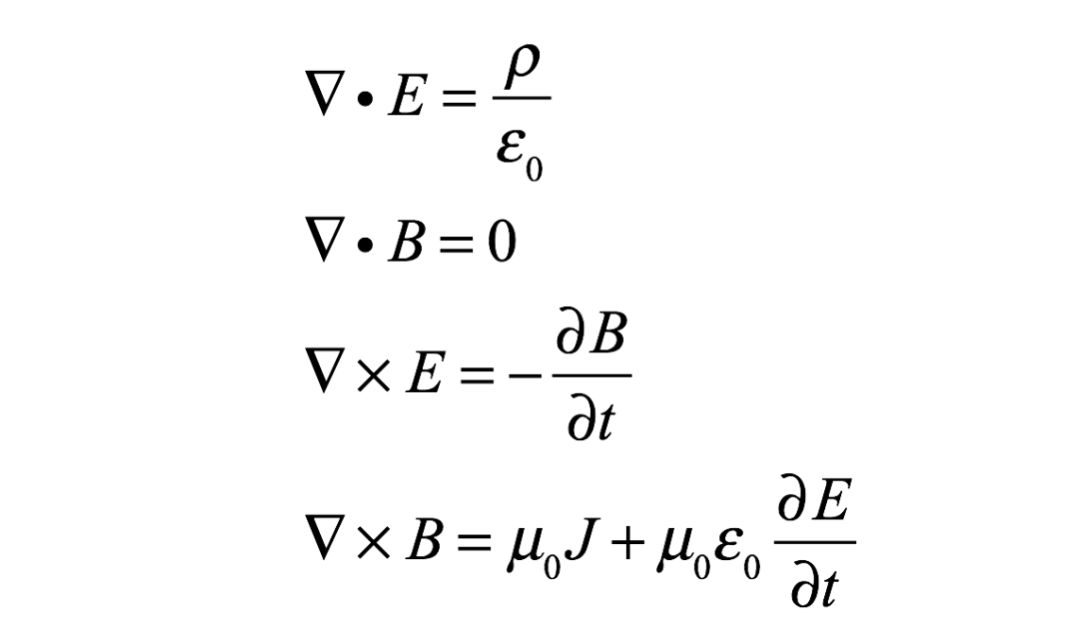 这四个描述电磁场散度和旋度的等式构成了麦克斯韦方程组,它们为电磁场在电荷存在时或者真空中的行为提供了完整的描述。