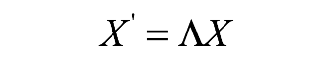 如图中的洛伦兹变换公式中表示的那样,大写的X和X’代表观察者和被观察的时空坐标。大写的希腊字母Λ是4×4的变换矩阵,它包含了物体与观察者相对速度的信息。