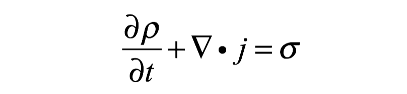 如果是一根没有洞的水管,可以确定流入和流出的流体量是相等的,因为流体是连续的!在这种情况下,连续性方程中代表流体源或汇的希腊字母σ等于零。从左往右,方程中另外两项分别代表单位时间内流入或流出封闭空间的流体量,以及流体的散度。连续性方程实质上是流体总量守恒的一种表述,描述了流体不会凭空产生或者消失。