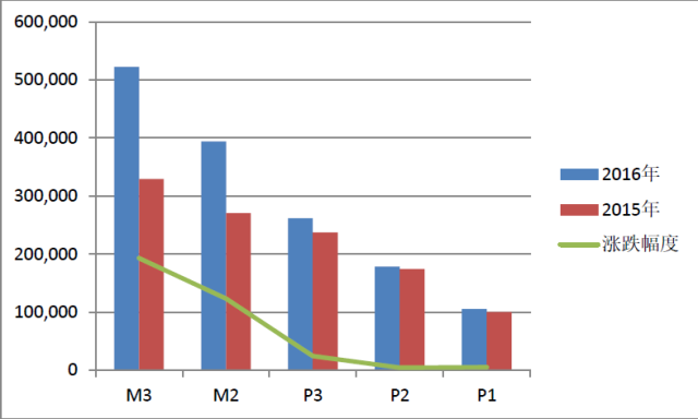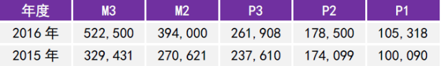 2016年与2015年产品管理类岗位实际总现金薪酬50分位对比: