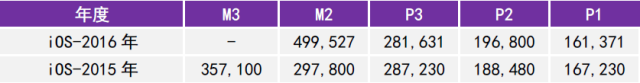 2016年与2015年iOS开发岗实际总现金薪酬50分位对比: