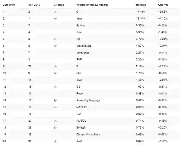 编程语言社区 TIOBE 最新发布了 6 月编程语言排行榜。
