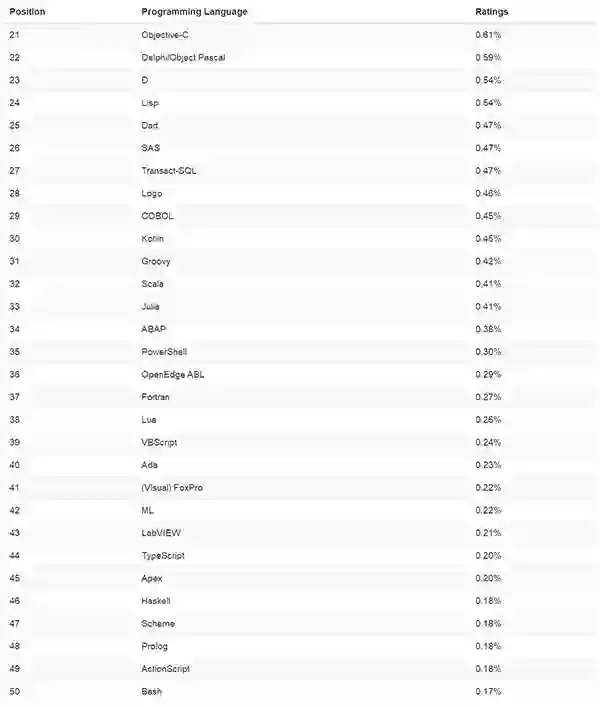 这个排行榜可以用来考查你的编程技能是否与时俱进,也可以在开发新系统时作为一个语言选择依据。