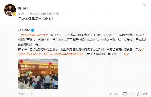 虽然创始人杜中宾在微博上回应,“巴奴永远是河南的企业。”但由此而引发的,餐饮企业究竟应该搬去哪里的讨论,却始终没有停止。