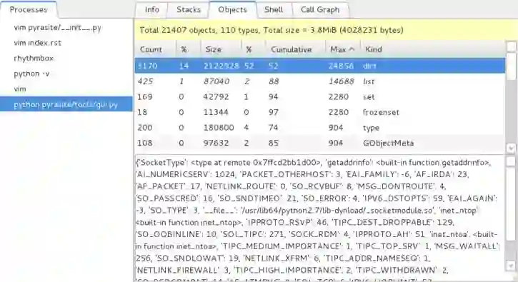 Pyrasite-GUIPyrasite-GUI是Pyrasite的图形界面,可让您轻松监控,分析,内省和更改正在运行的Python程序。