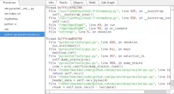Pyrasite是一个库和一组工具,用于将任意代码注入到运行的Python进程中。