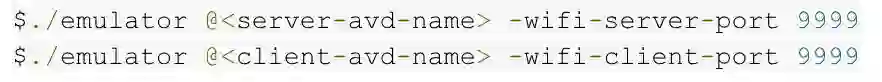 Android 9 Pie 模拟器系统镜像和 Wi-Fi P2P - 除了 Android 3.3 之外,您还可以为模拟器下载 Android 9 系统镜像文件,以便在本地进行应用测试。Google Play 模拟器系统镜像文件不仅具备 Android CTS (兼容测试套件) 认证,而且提供 Wi-Fi P2P 技术支持,允许两台模拟器以点对点形式直接互联。如需使用该特性,请通过以下命令行启动模拟器 (v28.0.22 或更高版本),并确保这两个模拟器共用一个 Wi-Fi 服务器和客户端口命令行参数。