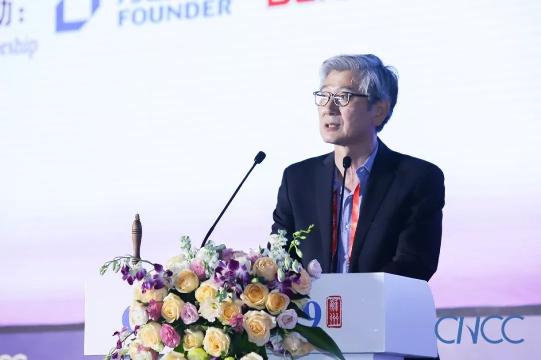 包云岗研究员代表获奖者发表获奖感言,IEEE CS主席Cecilia Metra及百度集团首席技术官(CTO)王海峰博士也分别讲话。