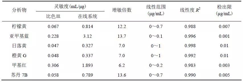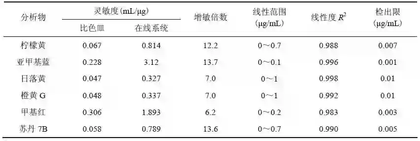 表1 在线盐控微萃取-流动池分光光度检测系统对六种色素分子的分析性能,与同光程比色皿测量对比