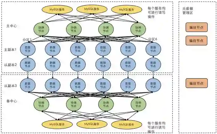 巨杉数据库的原生分布式架构,一方面提供了引擎级别的内部数据多副本和高可用以及基于Raft算法的数据一致性的保证。同时,在跨数据中心层面,可以做到分布式集群为单位的容灾和多活机制,在满足数据安全要求下减少了数据安全方面的部署和运维难度。