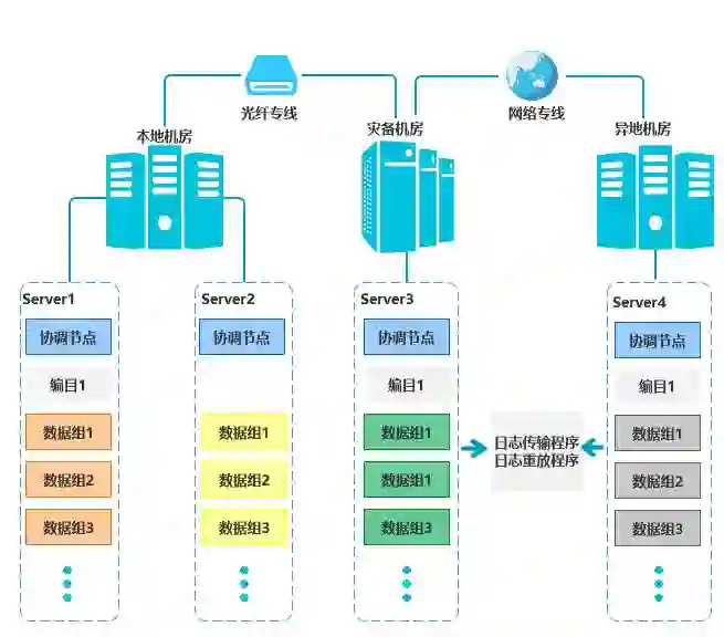 同时,巨杉也支持异地灾备机房的定期追加更新。用户可以通过定义异地灾备机房的同步策略,使灾备机房定期进行日志文件的同步,以做到灾备机房与主机房的数据拥有一定的时间差异,避免手工误操作。