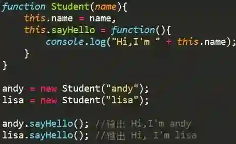 “记得我们刚才说的原型链吗? 当一个对象调用方法的时候,会顺着链向上找,所以我们可以创建一个原型对象,其中包含sayHello函数, 让andy, lisa这些从Student创建起来的对象指向这个原型就ok了。”
