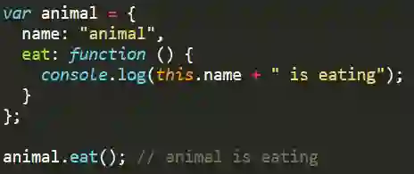 看到没有,这个animal对象定义了一个属性name, 和一个方法 eat , 简单吧?”