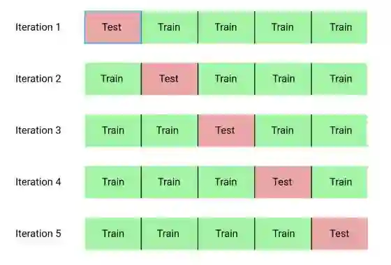 • 交叉验证(Cross Validation)是我们用来评估所选超参数组合的技术。 我们使用K折交叉验证,而不是将训练集分成单独的训练集和验证集,这会减少我们可以使用的训练数据量。交叉验证涉及到将训练数据分成K个folds,然后经历一个迭代过程,在这个迭代过程中,我们首先训练前K-1个folds的数据,然后在第K个fold的数据上进行评估表现。我们重复这个过程K次,在K-fold交叉验证结束时,我们将每个K次迭代的平均误差作为最终的性能度量。