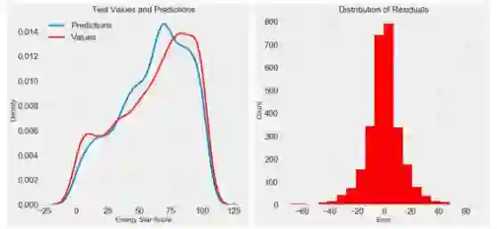 这项工作的结果表明,机器学习适用于我们的任务(使用可用数据预测建筑物的Energy Star Score)。使用梯度增强回归法,我们可以预测测试集的分数在真实值的9.1分以内。 此外,我们还看到,超参数的调优可以提高模型的性能,但是需要相当大的时间成本。这是我们在开发机器学习解决方案时必须考虑的众多权衡之一。