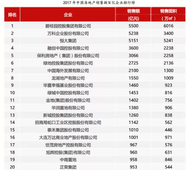 2017年国内千亿房企扩至16家,碧桂园万科恒大排前三