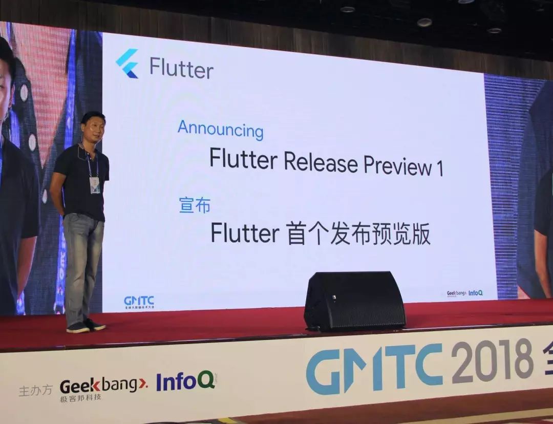 Google Flutter 团队高级工程师于潇老师在 GMTC 2018 宣布 Flutter Preview 1 发布