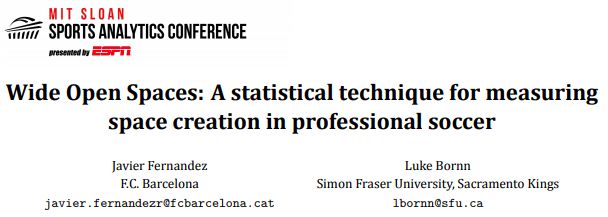 足球本质上是场地和移动的游戏,因此,Bornn和Fernandez利用位置数据设计了模型,评估球员对场地的占有和生成的情况。