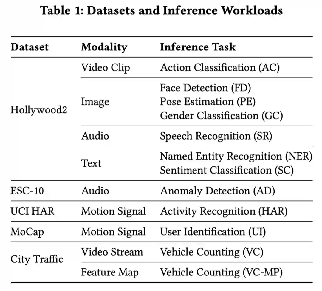 InFi 在 5 个数据集上的 12 种人工智能推理任务上进行了验证实验,涵盖图片、视频、文本、音频、运动信号、中间层特征六种输入模态。与三个基线方法的对比实验表明,InFi 具有更广泛的适用性,并且在准确性和效率上都更优。