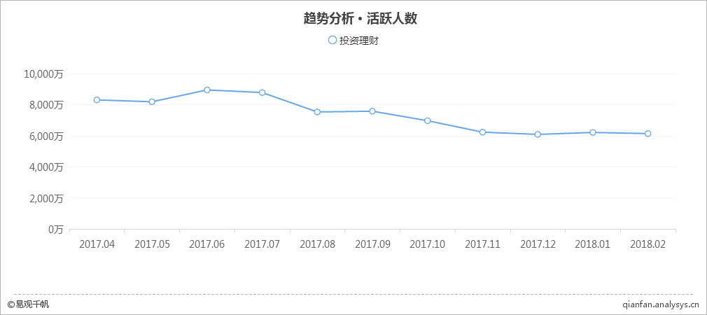 2017年4月-2018年2月投资理财类App活跃用户规模趋势