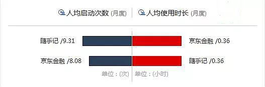 2018年2月京东金融与随手记人均启动次数对比