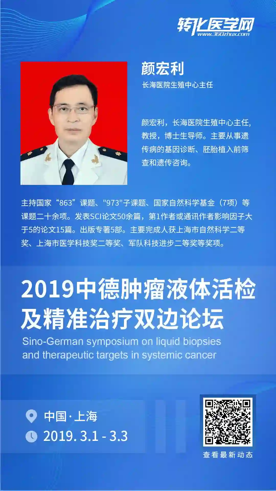 2019年3月1日至4日,中德肿瘤液体活检及精准治疗双边论坛等你参加,长按二维码查看更多信息。
