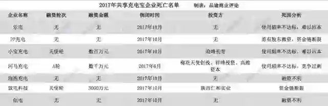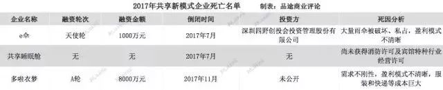 然而,2017年,共享系宣告进入死亡倒计时。截至目前,共有19家投身共享经济的企业宣告倒闭或终止服务。其中包括7家共享单车企业、2家共享汽车企业、7家共享充电宝企业、1家共享租衣企业、1家共享雨伞企业和1家共享睡眠仓企业。