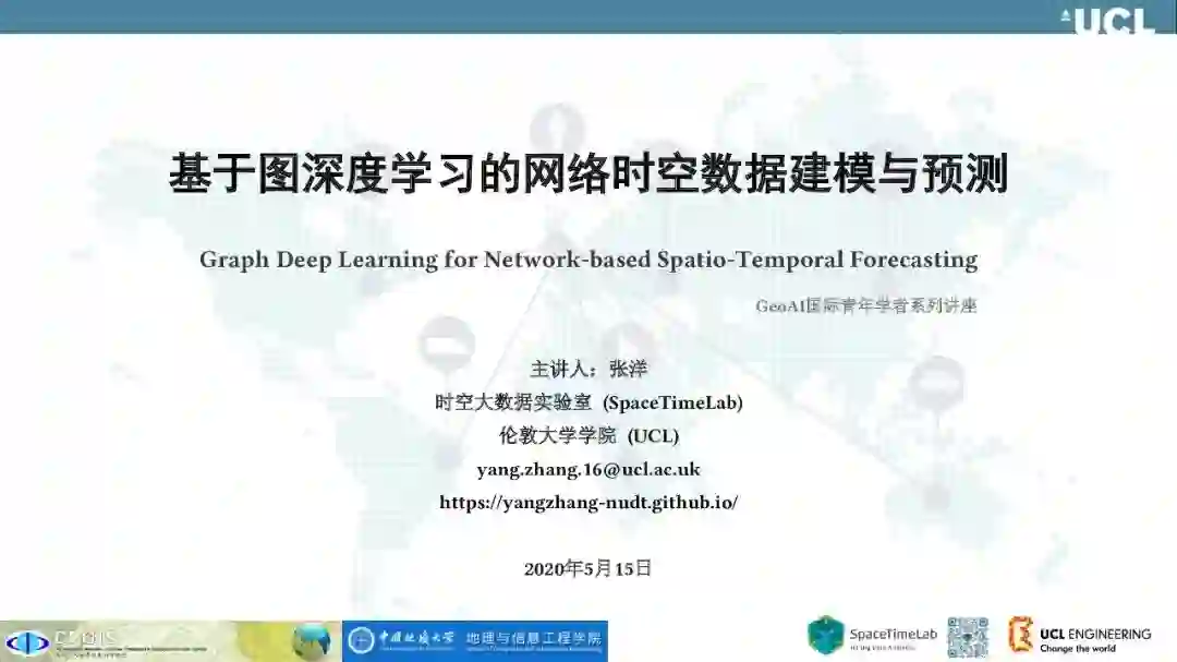 图图今日分享5月15日伦敦大学学院张洋博士带来的“基于图深度学习的网络时空数据建模与预测”报告PPT,拉到文末可获取往期讲座。