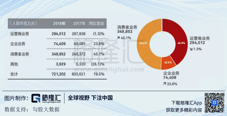 据华为披露的2018年财报,消费者业务营收达3489亿元人民币,同比增长45.1%,首次超过运营商业务。2018年,华为手机总销量为2.08亿部,占据全球14%的市场份额。