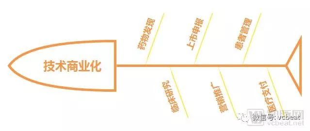 一个典型的药物技术商业化的流程,及可能涉及的关键环节。