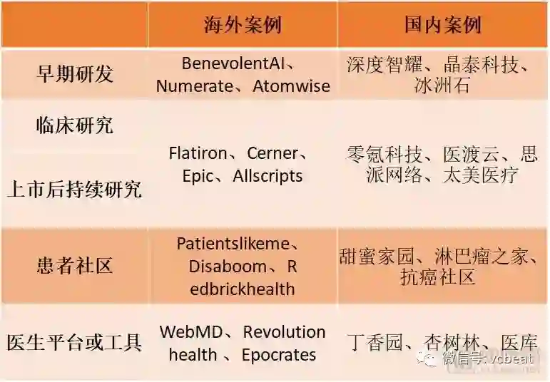 相应地,在这些不同的阶段涌现出的创新公司,也得到了药企的青睐。比如AI工具在早期研发中的应用,大数据工具在临床研究阶段的应用,在医生工具/平台进行的数字化营销的尝试,以及患者管理工具的渗透。