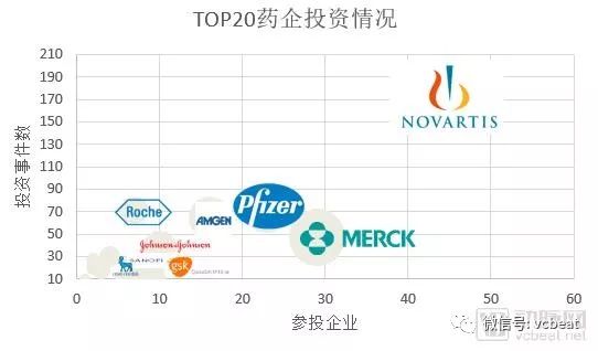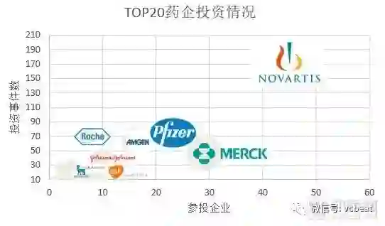 TOP20药企中,绝大部分都设立了专门的风险投资基金,对初创企业进行投资。如辉瑞的Pfizer Venture Investments,诺华的Novartis Venture Fund,罗氏的Roche Venture Fund等。