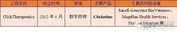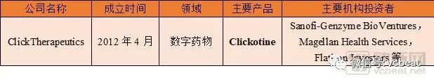 2018年7月,Click Therapeutics宣布完成1700万美元融资,由赛诺菲风险投资(Sanofi Ventures)领投,在种子轮融资中,Click获得了Flatiron Health的投资。目前,Click的总融资超过2500万美元。