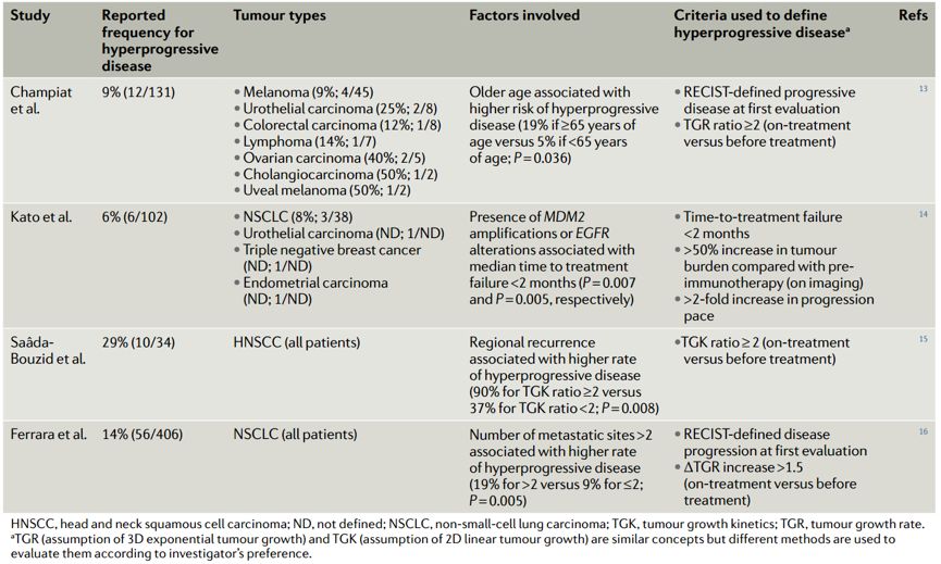 [2] Champiat S, Ferrara R, Massard C, et al. Hyperprogressive disease: recognizing a novel pattern to improve patient management. Nat Rev Clin Oncol,2018,15(12):748-762.