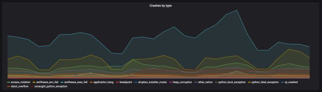 这些错误会攻击程序,虽然应用程序大多数情况下都可以恢复,但有时也会导致程序终止。这样的终止或“崩溃”对程序具有很高的破坏性:当Dropbox程序终止时,程序就无法同步了。为了确保我们的用户可以不间断的同步,我们会自动检测并报告所有崩溃,同时采取措施重新启动程序。