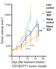 在ER阳性模型中,肥胖动物肿瘤内的脂肪细胞和某些免疫细胞过度表达几种炎症和血管生成分子,包括IL-6。阻断那些小鼠中的IL-6增加了对抗VEGF治疗的反应,与对瘦动物所见的反应相反。