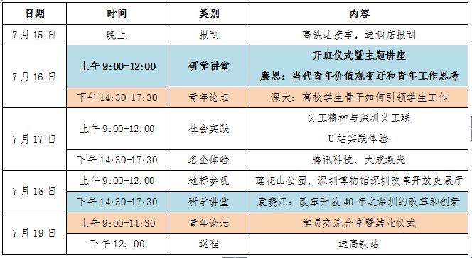 时间:2018年7月15日—19日