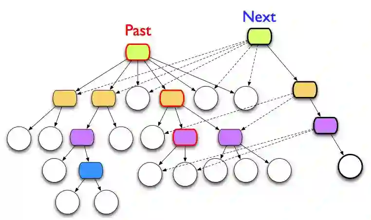 在这里,数据保存在叶子节点上,然后以数据的索引为基础构建出来一棵树。当整个结构的某些数据变更时,我们只需要产生新的数据,然后产生索引该数据和未改变数据的一棵新的树,从而在空间上避免 immutable 产生的拷贝。在函数式编程语言中,旧的树如果没有人用了,GC 就回将其回收,但如果我们把每个 event 产生出来的新的树和旧的树链接起来,或者记录下来,就具备了时间旅行的能力。