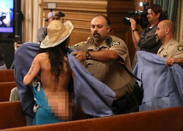 由于任何人不需经过批准就可进入政府大楼,有时也会发生“意外”。例如,2012年12月4日,旧金山发生裸女大闹市政厅,高呼“身体自由”的事件。那天,旧金山市监督委员会正在市政厅开会,讨论关于禁止在公共场合裸体的议案,议案将禁止民众在该市的街道、广场、人行道以及其他公共场合内的赤裸行为。想不到在会议进行期间,现场竟遭到一批裸体人士抗议。一群大胆的抗议者冲进会议厅,脱掉全部衣服,抗议该市关于禁止在公共场合裸体的法令。该市司法官员连忙给抗议者披上衣服遮羞,并带他们离开会场。在被带离会议厅时,抗议者们还高呼“身体自由”和“你们很可耻”等口号。