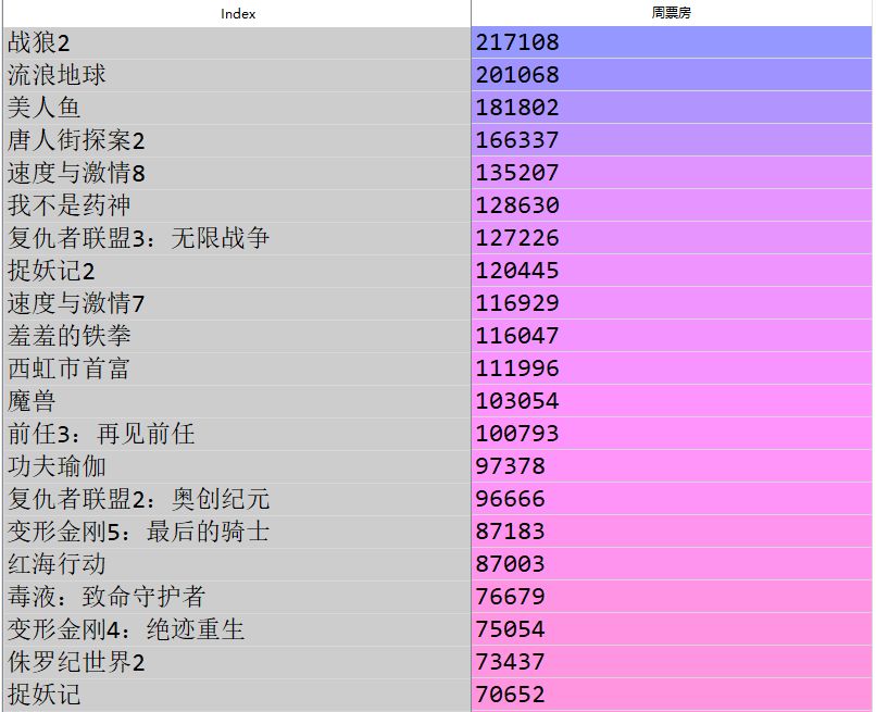 除了爬虫,分析数据也是Python的重要用途之一,Excel能做的事,Python究竟怎么实现呢;Excel不能做的事,Python又是否能实现呢?利用电影票房数据,我们分别举一个例子说明: