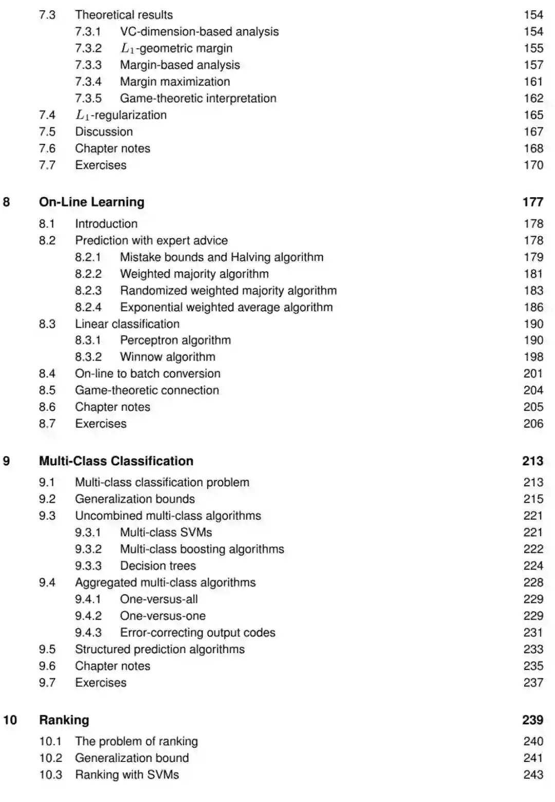 Mehryar Mohri 等作者的目标是为多个主题和领域提供统一的内容框架,而不是其它书籍采用的专题展示。这些专题书籍只描述某个特殊的视角或主题,例如贝叶斯视角或核方法主题。这本书有比较强的理论基础,证明与分析也会着重强调,因此它相比很多书籍都有较大的差别。