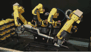▼abb机器人:哎嘿,哎嘿,我们是打铁小能手