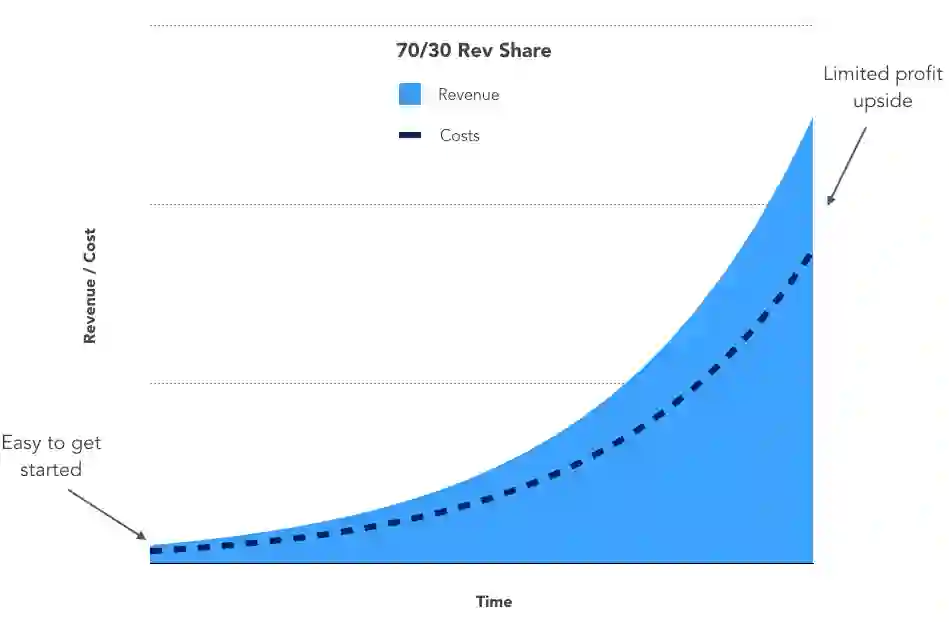 收入分成使得进入市场更容易,但平台方难以利用规模效应,收入增长被成本增长拖了后腿