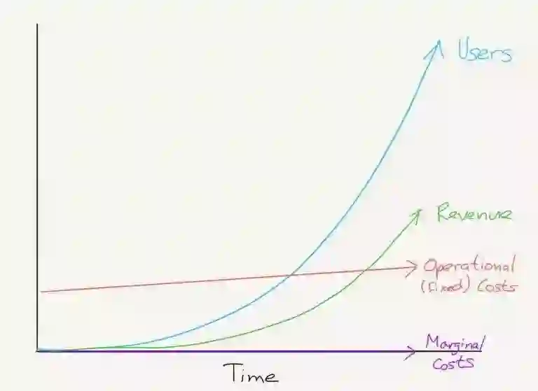 而可扩展性的实现前提是巨大且可能血本无归的资本开支,很少有人能够独立承担。VC 们看中了潜在的巨大收益,愿意把钱投给这种先花大钱搞开发,然后利用最小的边际成本快速扩张,实现 scalability 的商业模式。