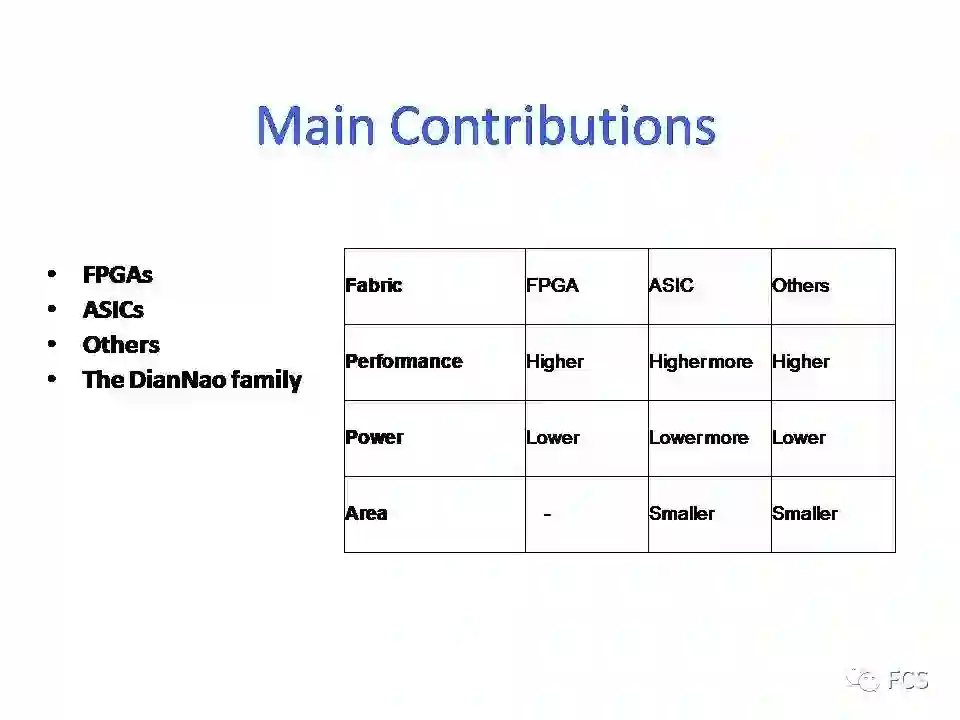 针对上述情况,近年来涌现出一些关于神经网络加速器的研究工作,用于实现高性能和低功耗。本文回顾了包括DianNao加速器在内的神经网络加速器相关的研究工作,可为神经网络领域的硬件研究人员提供参考。